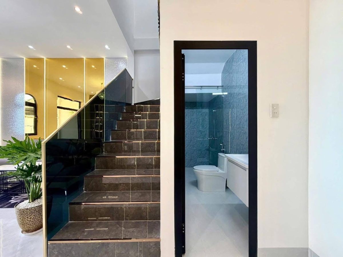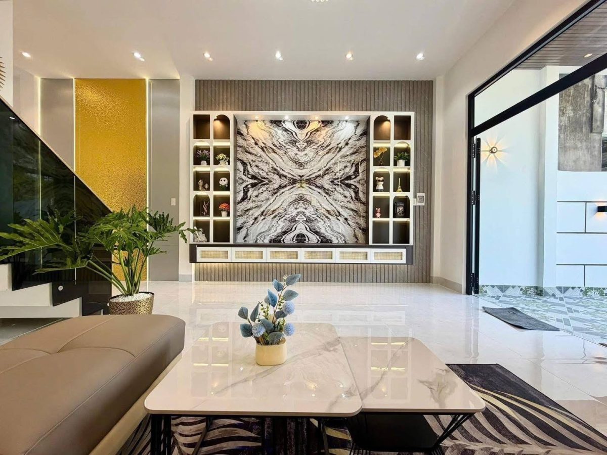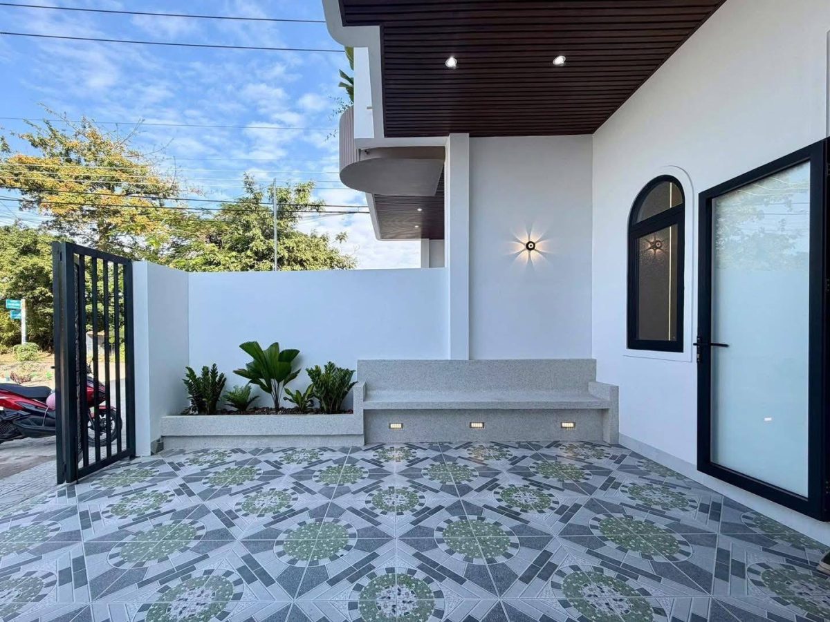 Bạn đang tìm mẫu nhà phố 2 tầng độc đáo với chi phí hợp lý? Ngôi nhà này chính là câu trả lời hoàn hảo. Thiết kế gây ấn tượng bởi những đường cong mềm mại ở ban công, phá vỡ sự đơn điệu của nhà ống truyền thống. Sự kết hợp giữa tường trắng, trần ốp giả gỗ và cổng sắt CNC nghệ thuật tạo nên vẻ ngoài vừa hiện đại, vừa sang trọng. Đây là giải pháp lý tưởng giúp bạn sở hữu tổ ấm thẩm mỹ, thoáng đãng mà vẫn tối ưu ngân sách.