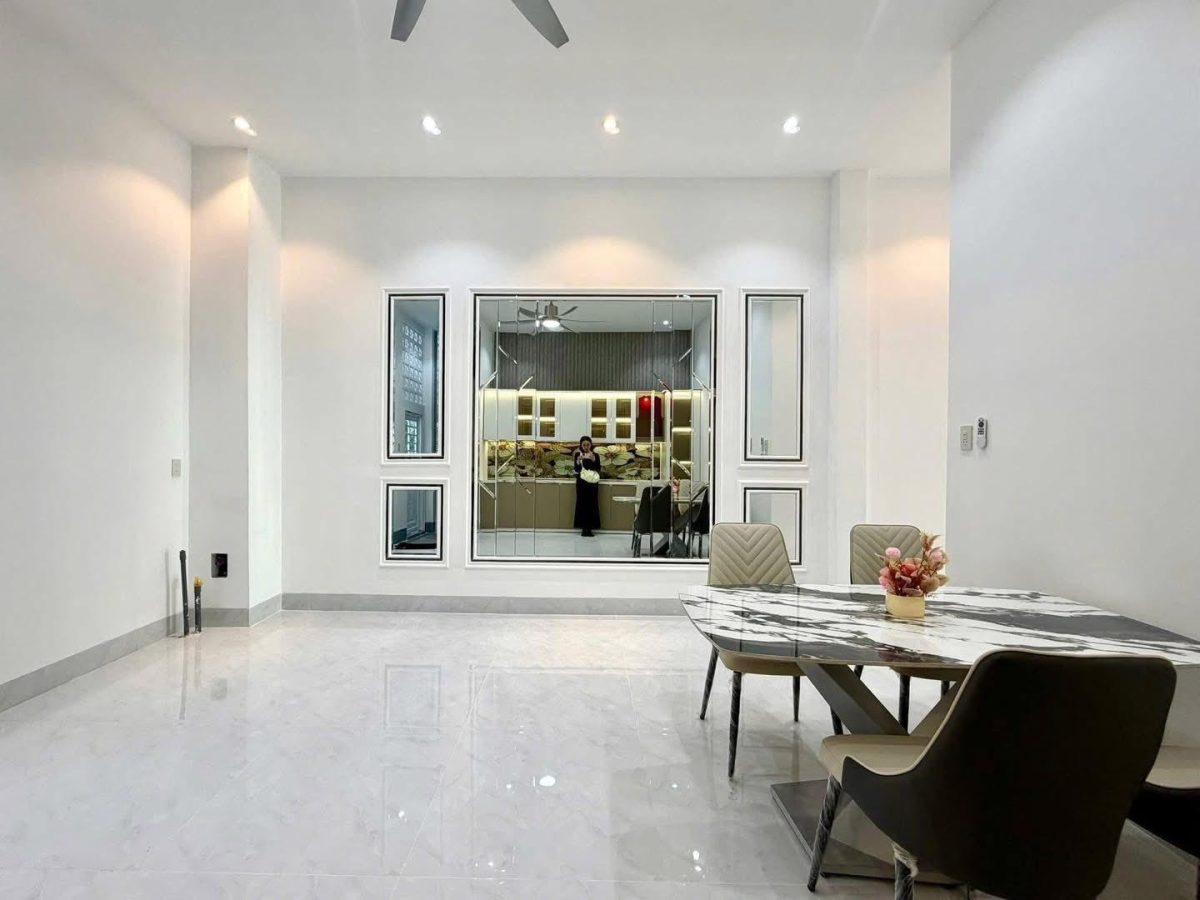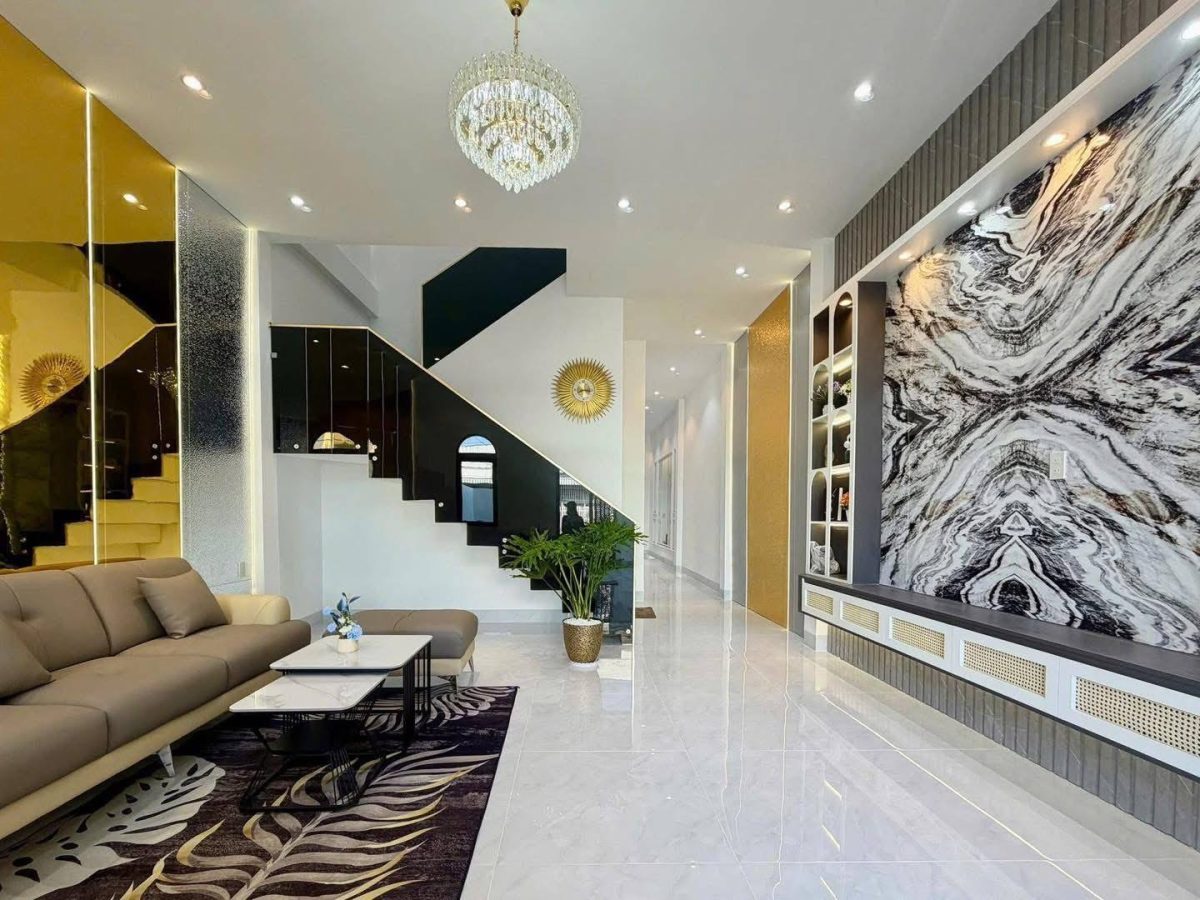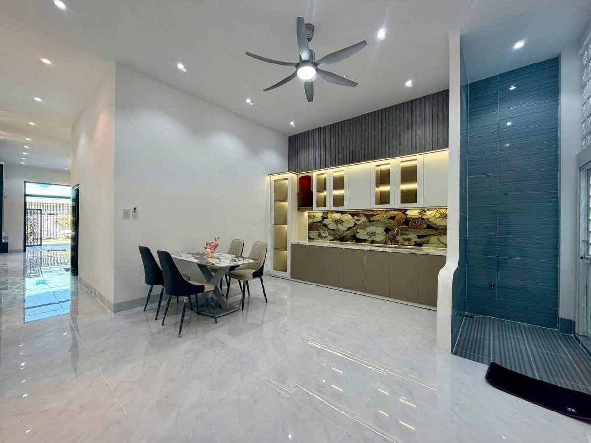 Bạn đang tìm mẫu nhà phố 2 tầng độc đáo với chi phí hợp lý? Ngôi nhà này chính là câu trả lời hoàn hảo. Thiết kế gây ấn tượng bởi những đường cong mềm mại ở ban công, phá vỡ sự đơn điệu của nhà ống truyền thống. Sự kết hợp giữa tường trắng, trần ốp giả gỗ và cổng sắt CNC nghệ thuật tạo nên vẻ ngoài vừa hiện đại, vừa sang trọng. Đây là giải pháp lý tưởng giúp bạn sở hữu tổ ấm thẩm mỹ, thoáng đãng mà vẫn tối ưu ngân sách.